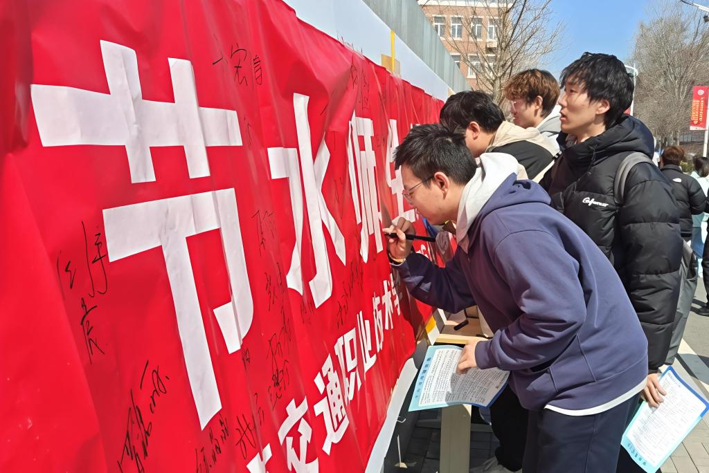 3月19日,為慶祝第三十四屆“世界水日”和第三十九屆“中國水周”,響應建設節水型高校號召,普及水生態環境保護理念,推進學校節能減排、綠色低碳、文明環保工作,學校在教一樓門前組織開展了“節水師生共建?共譜世紀畫卷”主題簽名活動。黨委委員、副院長王穎到現場指導工作,并與節水志愿者們合影留念。活動現場,志愿者們通過現場講解、發放宣傳手冊等方式,向師生們介紹了“世界水日”與“中國水周”的相關知識。學習節水....